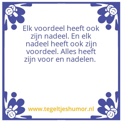 Elk nadeel heeft elk voordeel